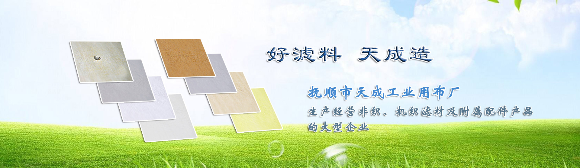 公司中文名稱: 撫順市天成工業用布廠,遼寧天舜環保工程有限公司,撫順天成環保科技有限公司----已成立天成集團。撫順市天成工業用布廠是生產經營非織、機織濾材及附屬配件產品的大型專業企業之一,已通過ISO9001國際質量體系認證,并取得獨立出口權,是中國環保產業骨干企業之一,是袋式除塵委員會會員單位。我公司固定資產達1.6億元,年生產能力為2000萬平方米,在撫順設有撫順市天成工業用布廠;撫順天成環保科技有限公司;遼寧天舜環保工程有限公司,具有現代化生產廠房40000余平方米,生產常溫、中溫、高溫三大系列上百個品種非織.機織濾材及骨架、文氏管等附件。撫順天成集團公司按國際標準配置了10套國內先進的針刺生產線,同時擁有燒毛、軋光、定型、涂層、浸漬、烘干、覆膜多套后整理設備。并配置如:數字強力儀、數字電子透氣儀、烘箱等多臺套檢測設備,將完全保證濾料產品的品質,并可滿足不同行業,不同工況的需求。產品廣泛應用于鋼鐵、水泥、有色金屬冶煉、焦化、瀝青拌和、電力、化工、煙草、食品、醫藥、木材加工等行業。