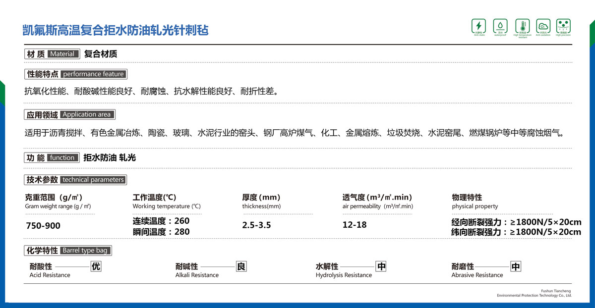 凱氟斯高溫復合拒水防油軋光針刺氈