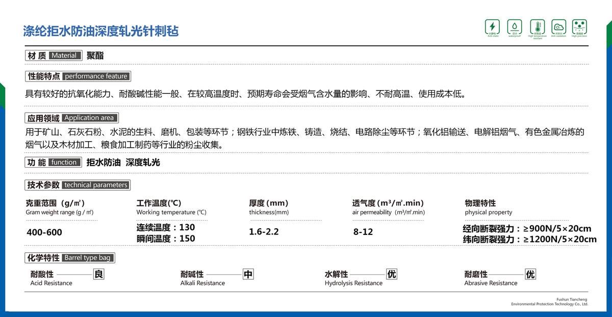 滌綸拒水防油深度軋光針刺氈
