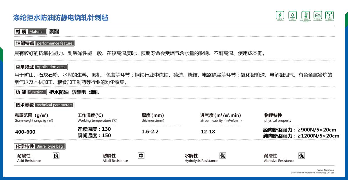 滌綸拒水防油防靜電燒軋針刺氈
